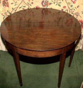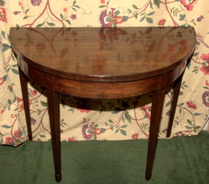 The frame is oak and deal with mahogany veneers and ebony stringing.