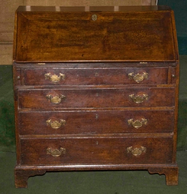 The bureau is fitted with interior drawers under the fall and stands on bracket feet.