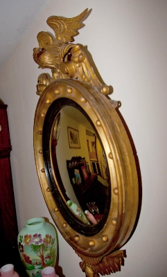 Surmounted by a gilt wooden eagle and decoration to base giving good proportions.