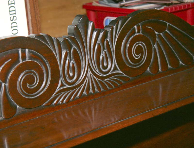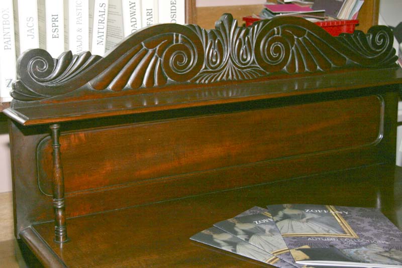 The height from the ground to the serving surface is 39ins, above which there is a narrow shelf standing on slim turned supports with nicely carved back giving an additional height of 15in.
