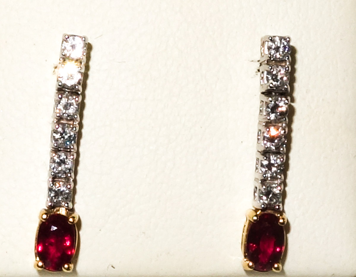Earrings 18ct Ruby and Diamond Drop