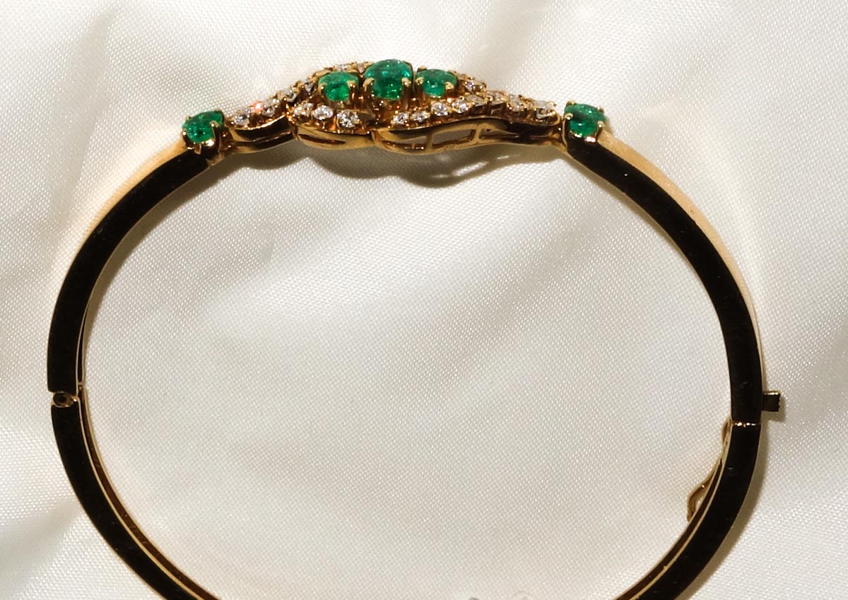 A Lovely condition Emerald and Diamond 18ct gold Bangle