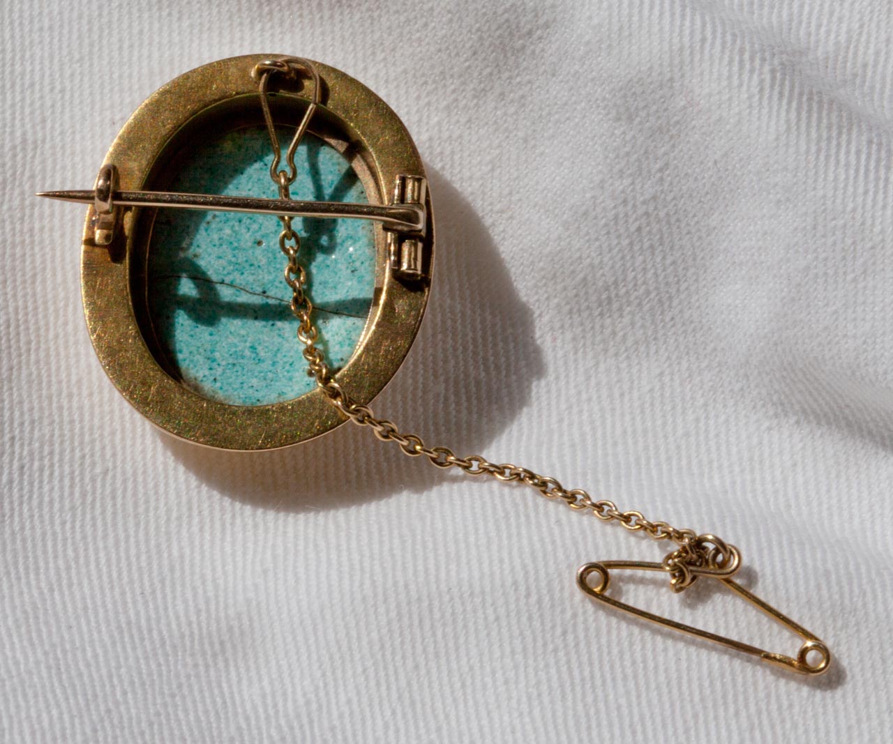 This lovely cameo brooch is not hallmarked but has been tested to 14-15ct