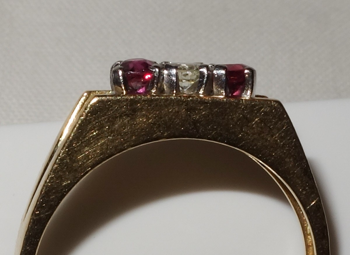 An Attractive Antique 18ct Ring with 2 Rubies and 1 Diamond c1972