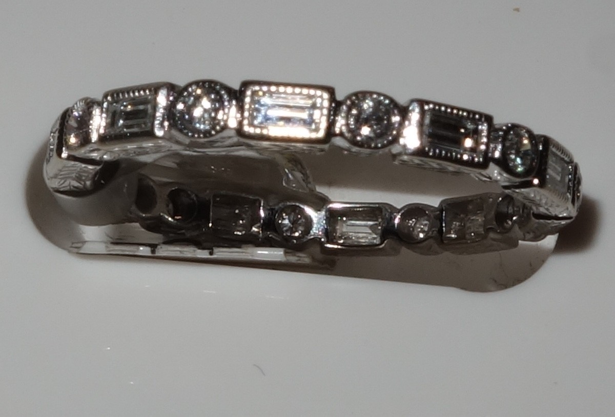 A very pretty Antique 18ct white gold full Eternity Ring with brilliant & baguette cut diamonds.