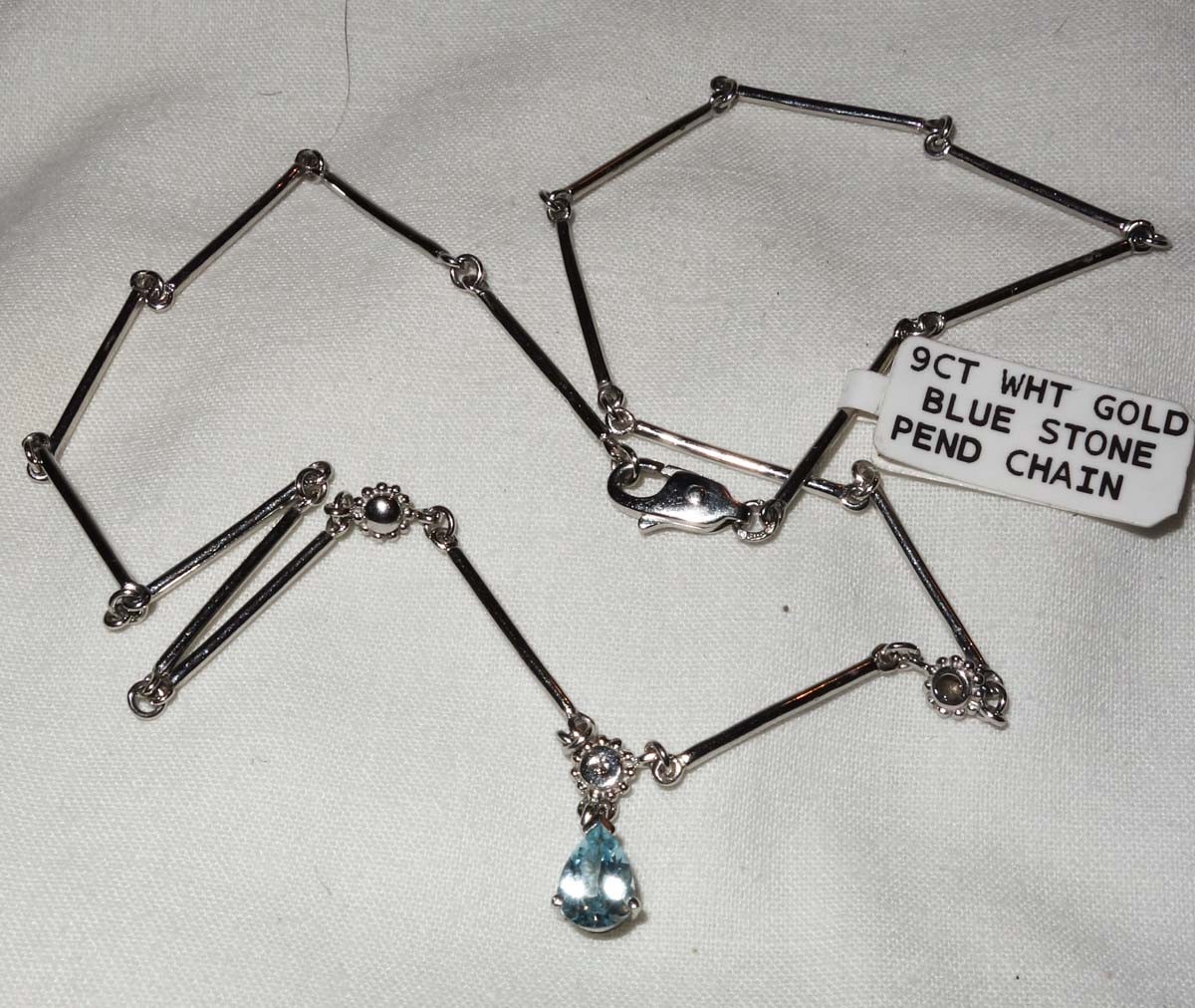 with 3 pt diamond and pear shaped aquamarine Drop approx 1ct