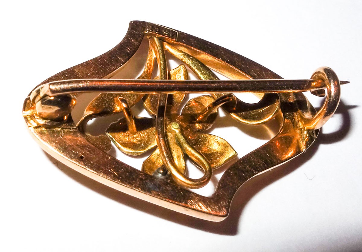 Brooch 15ct Art Nouveau enamelled c1900-1910