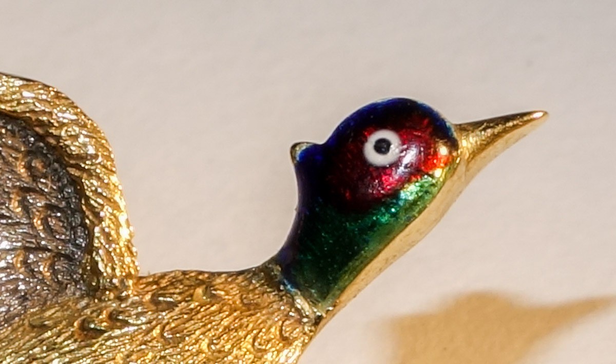 Brooch 18 CT gold Enamel Pheasant Victorian