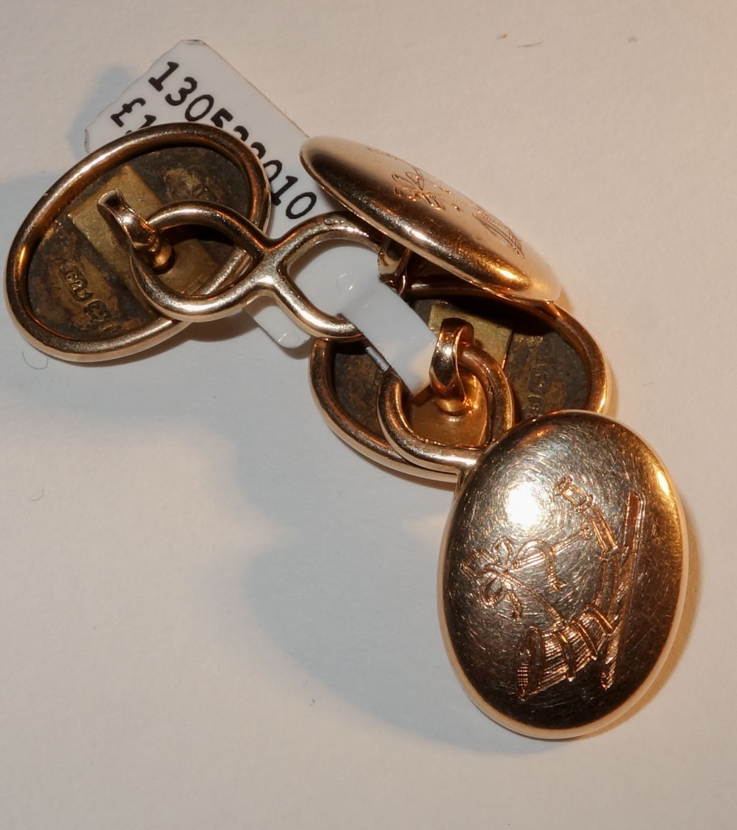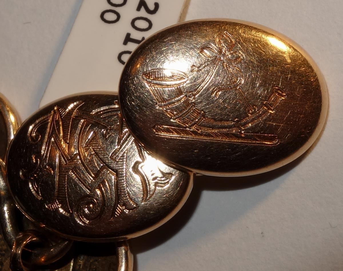 Cufflinks Pair 15 CT Gold Oval Edwardian