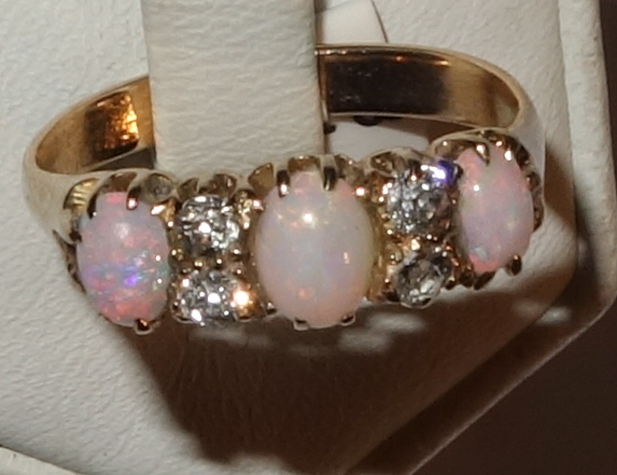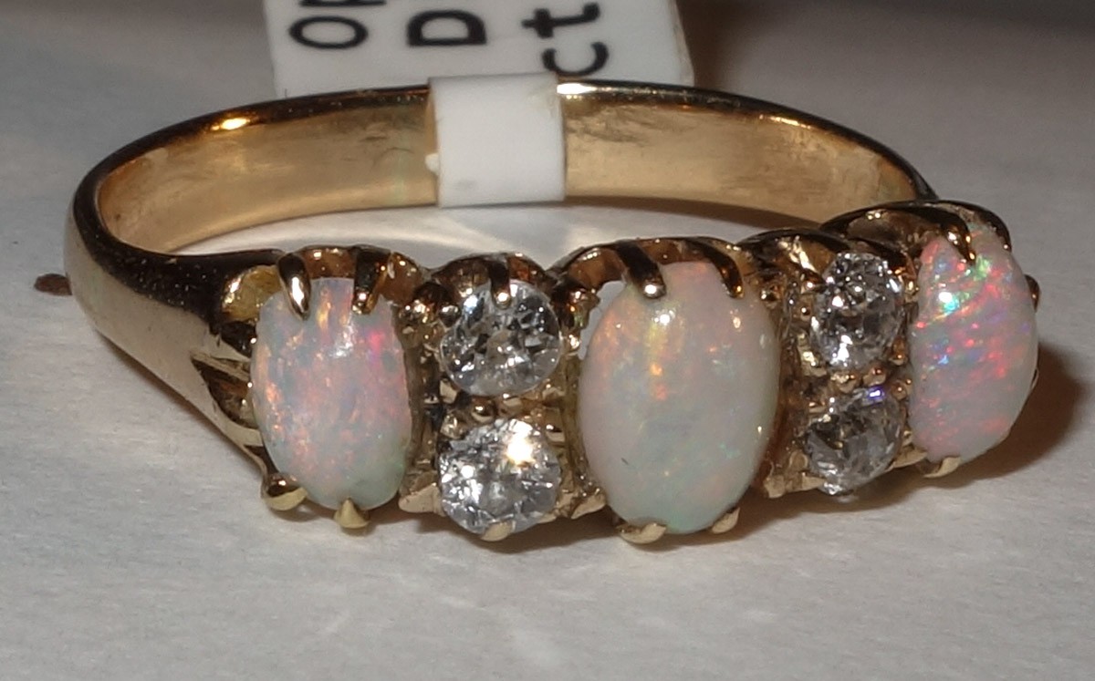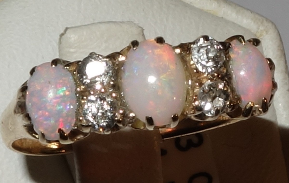 Ring Antique 9 Ct Gold 3-opal and 4-diamond